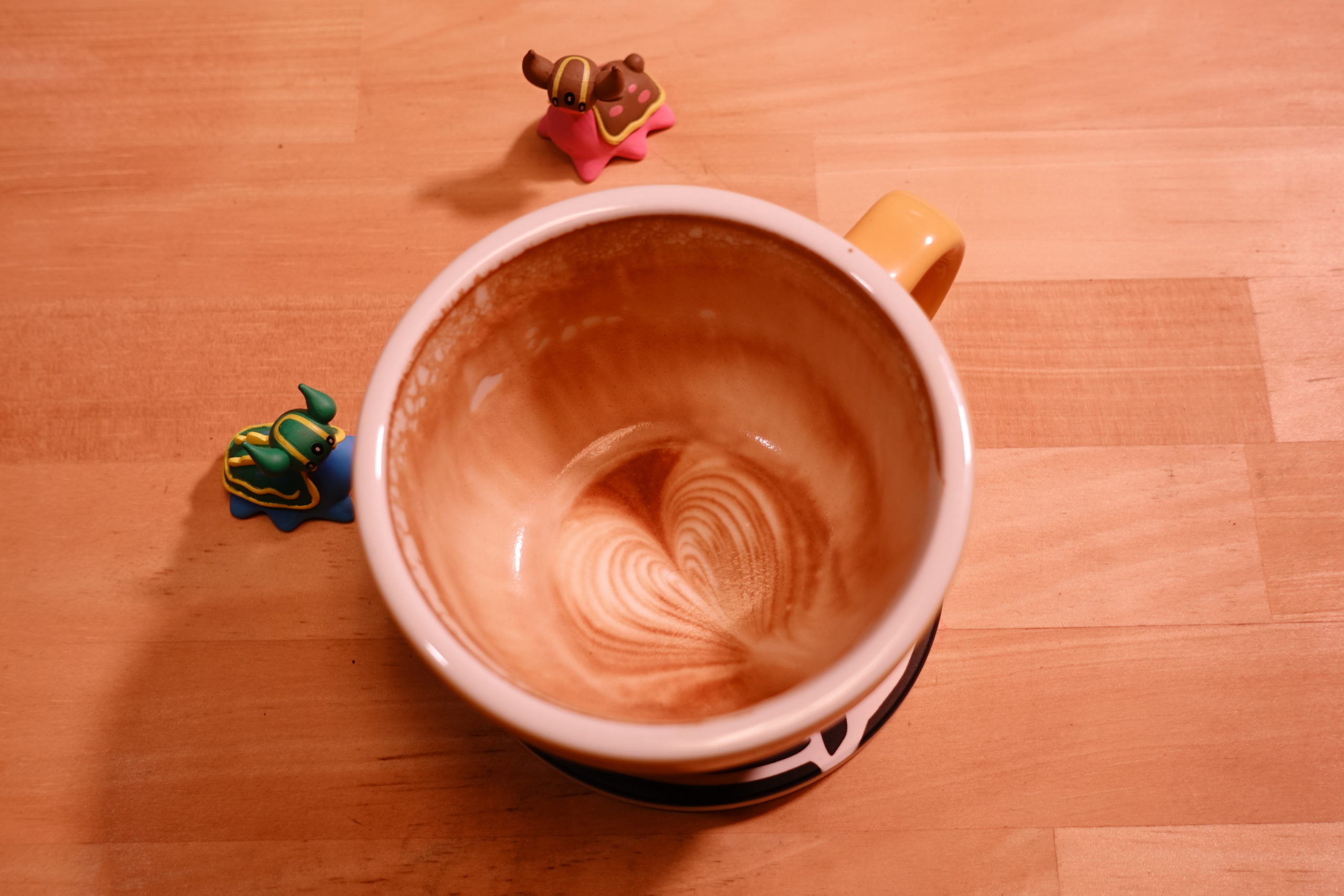 (え!ミルクの量ふやして深さを出すって!?ミルクのロスはばかにならないからやめなぁ。それよりもピッチャーの直径を小さくして高さがでるようにしたらどうかな?え!そしたらピッチャーの傾きがとれなくてうまく注げないって!?)