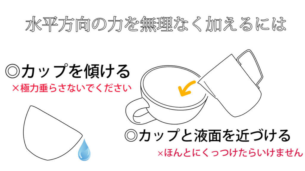 クレマが薄ければ水平方向の力はある程度弱くて大丈夫ですが、逆に厚ければ水平方向の力は強く必要です。